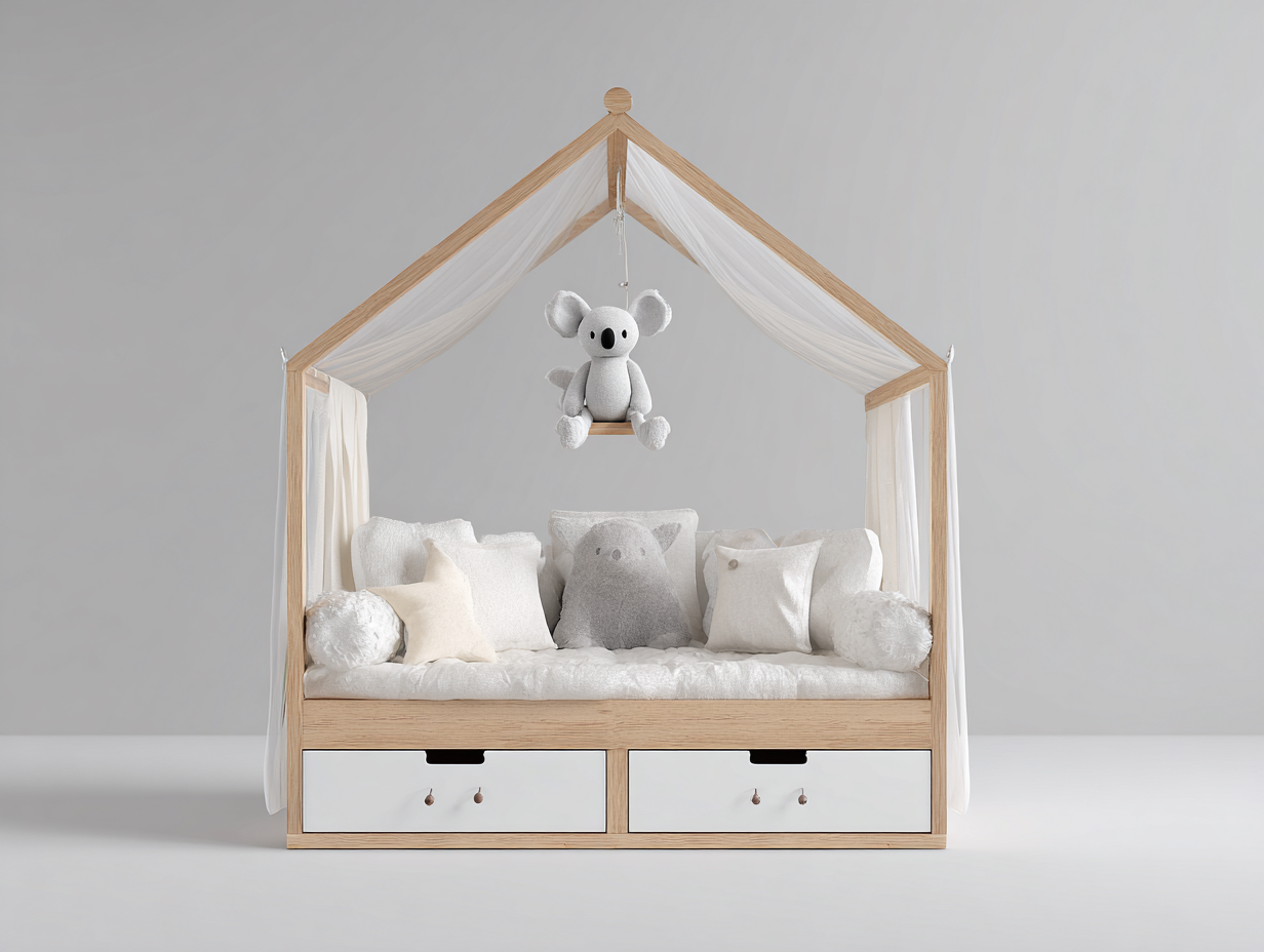 - 1 x Hausförmiges Kinderbett aus Holz